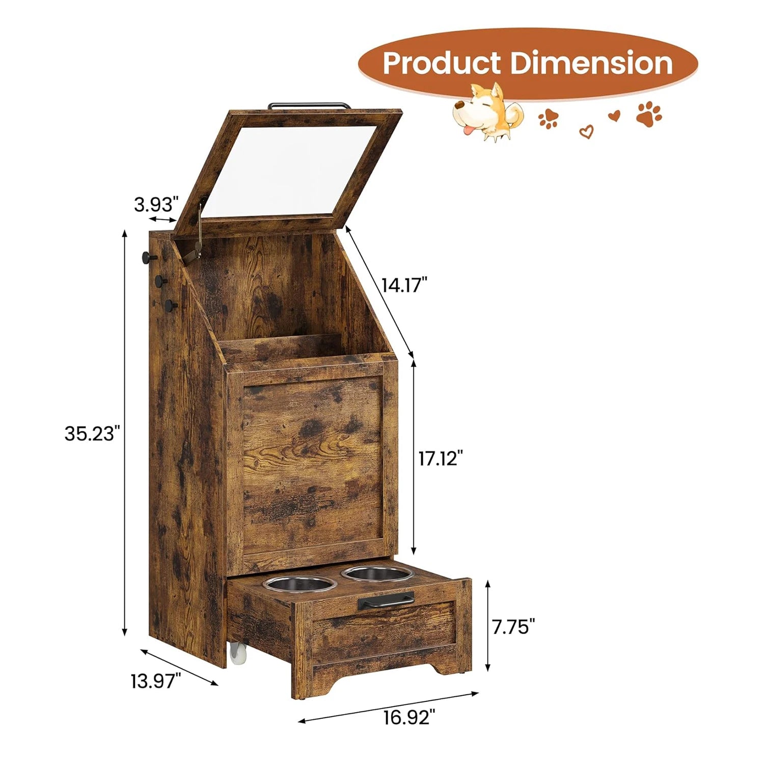 Dog Feeding Station with 2 Elevated Dog Bowls Flip Top Pet Food Cabinet Pet Food Container Pet Toys Storage Organizer