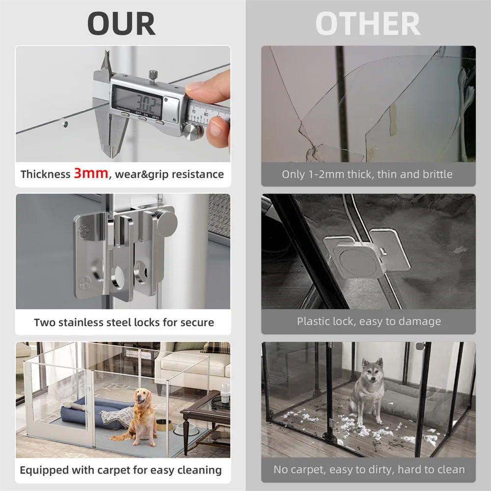 Heavy Duty Large Acrylic Dog Playpen Transparent Dog Fence Enclosure Cage Pet Whelping Box with Waterproof Fertility Pad Door