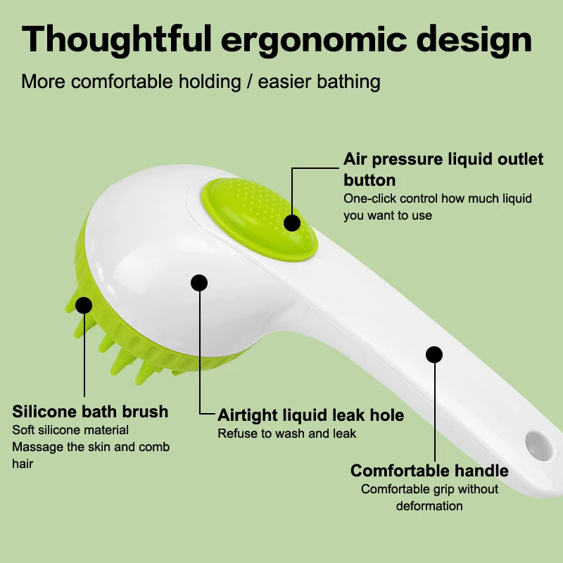 2. Press type cleaning: The pet cleaning brush adopts a press type design, making cleaning work simple and efficient. Users only need to lightly press to generate enough cleaning bubbles, which not only saves cleaning solution but also increases the fun of cleaning.